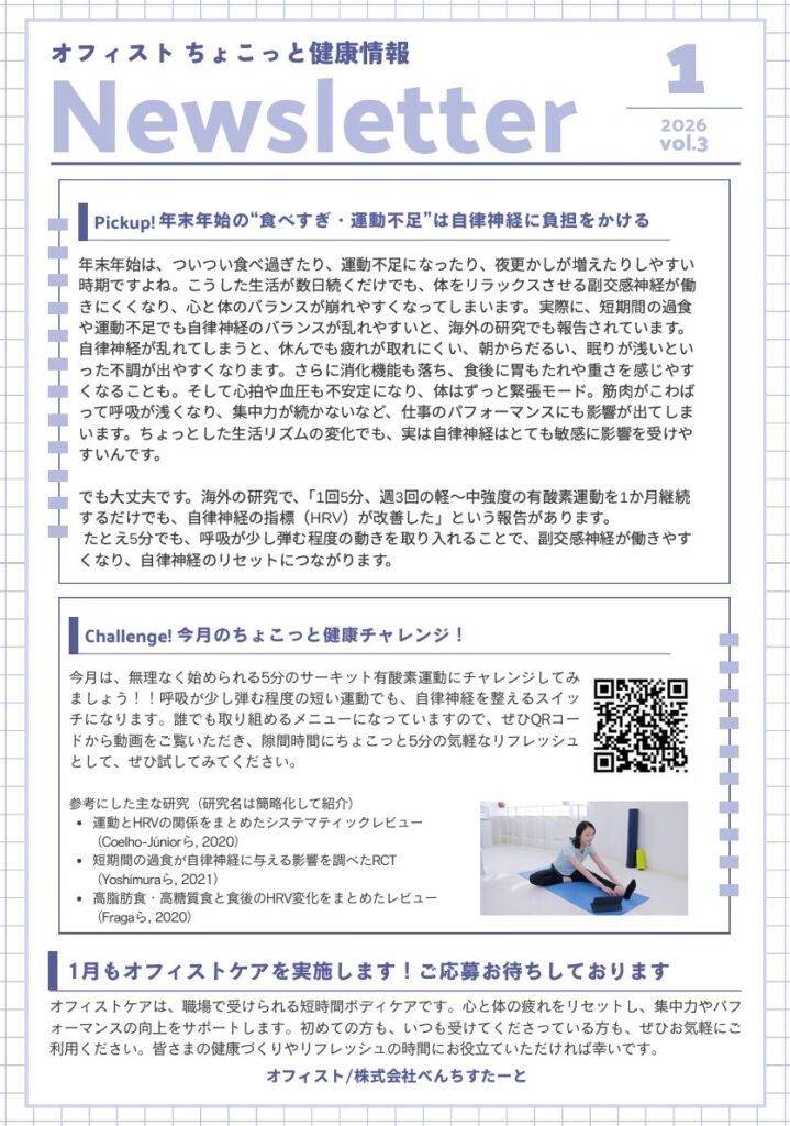 「オフィストちょこっと健康情報1月号」を発行しました